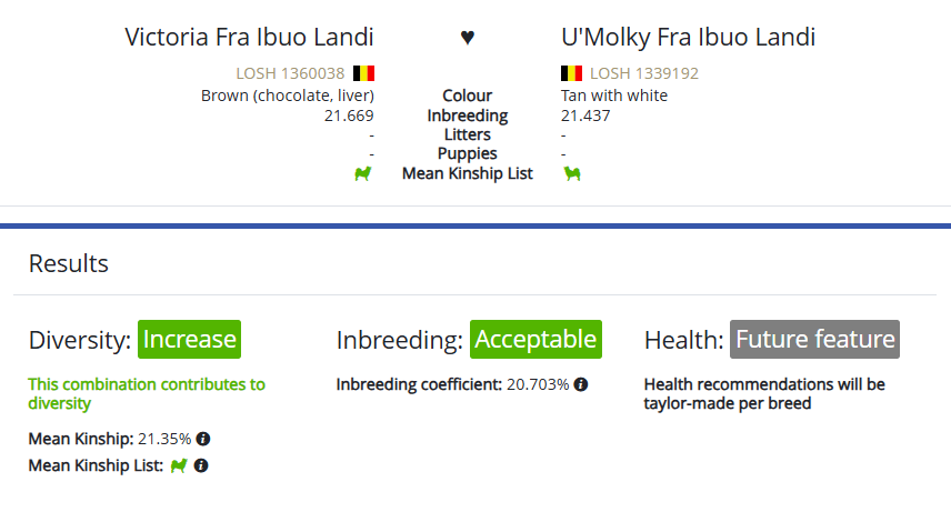 Nous avons un compte sur Dog’s Global qui nous permet de simuler des mariages et donc de connaître la diversité génétique de nos futures portées.